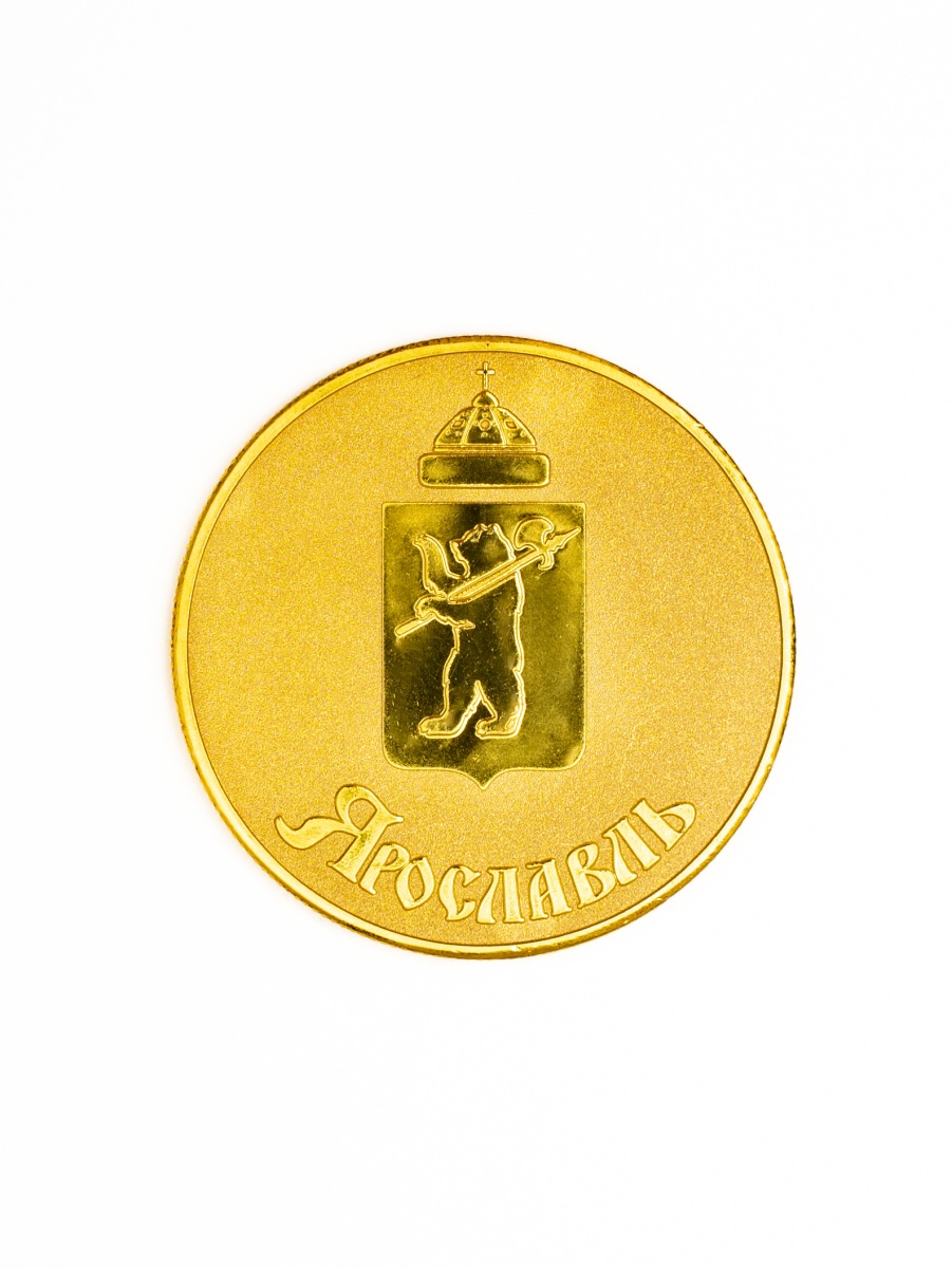 Монета металлическая цветная Ярославль. Диаметр 45 мм. Упакована в пластиковый бокс и картонную упаковку с евро подвесом